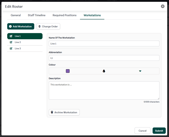 To ensure that the roster workstations are in the order that you need them, you can adjust their order in the edit roster section